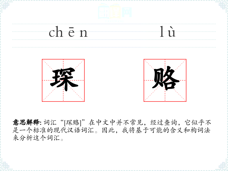 词汇“[琛赂]”在中文中并不常见,经过查询,它似乎不是一个标准的现代汉语词汇。因此,我将基于可能的含义和构词法来分析这个词汇。
