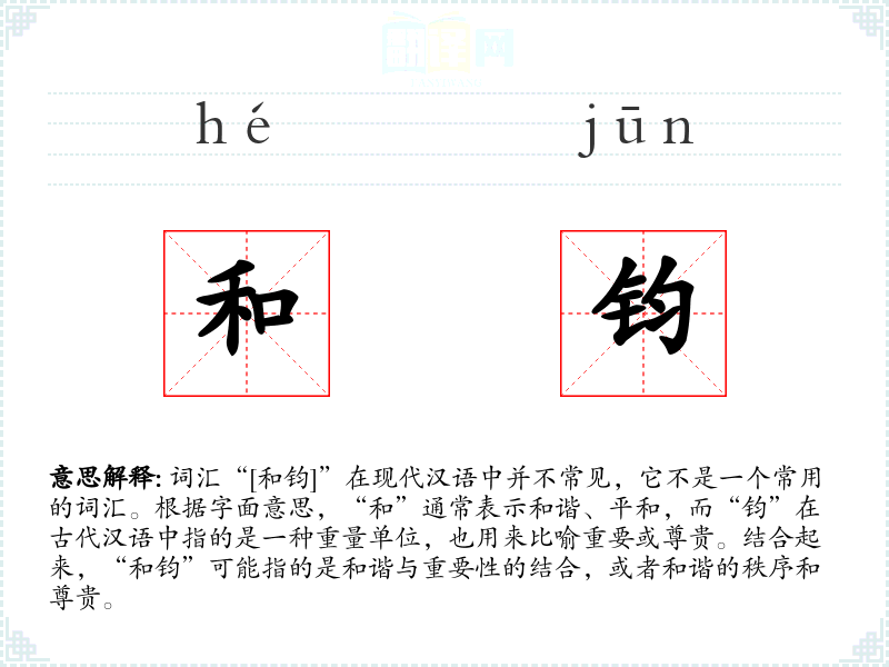 - 词源:“和”来自古代汉语,表示和谐;“钧”来自古代重量单位,后引申为重要或尊贵。