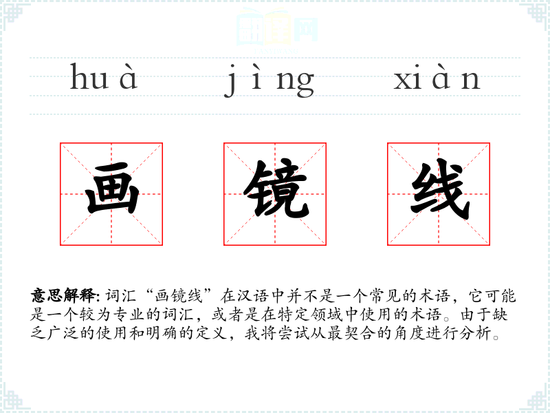 词汇“画镜线”在汉语中并不是一个常见的术语,它可能是一个较为专业的词汇,或者是在特定领域中使用的术语。由于缺乏广泛的使用和明确的定义,我将尝试从最契合的角度进行分析。