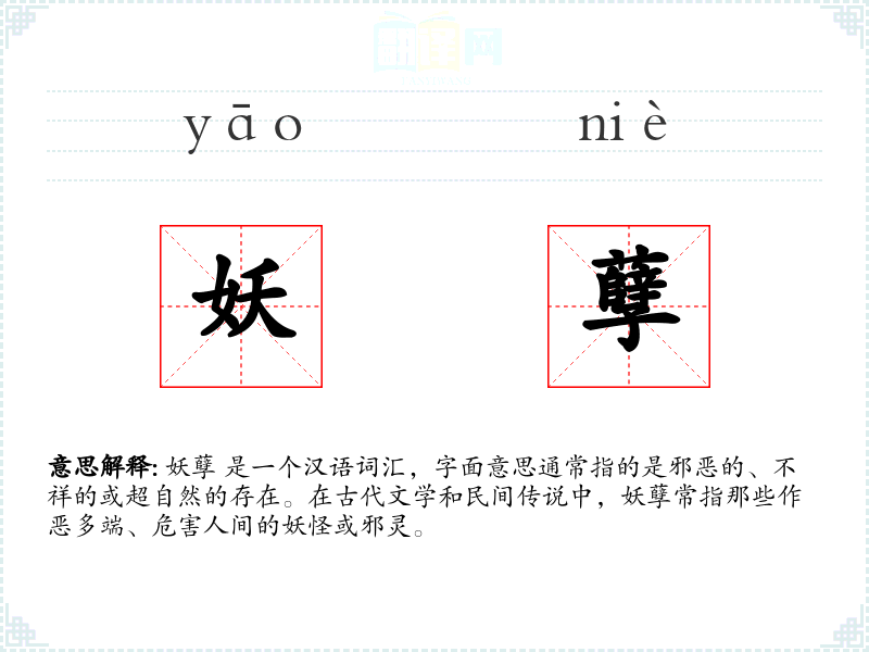 妖孽 的词源可以追溯到古代汉语,其中“妖”指的是邪恶的、不祥的事物,“孽”则有罪恶、不正当的含义。随着时间的推移,这个词的含义逐渐固定,主要用来指代那些超自然的、邪恶的存在。