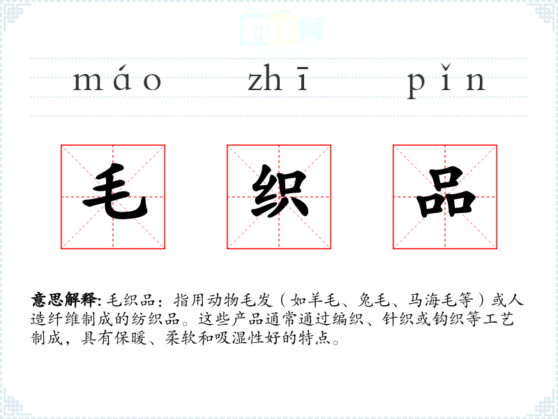 毛织品作为一个词汇,不仅涵盖了物质层面的纺织品,还承载了文化、情感和传统的多重意义。在语言学习和表达中,理解和运用这一词汇,能够丰富我们的语言表达和文化认知。