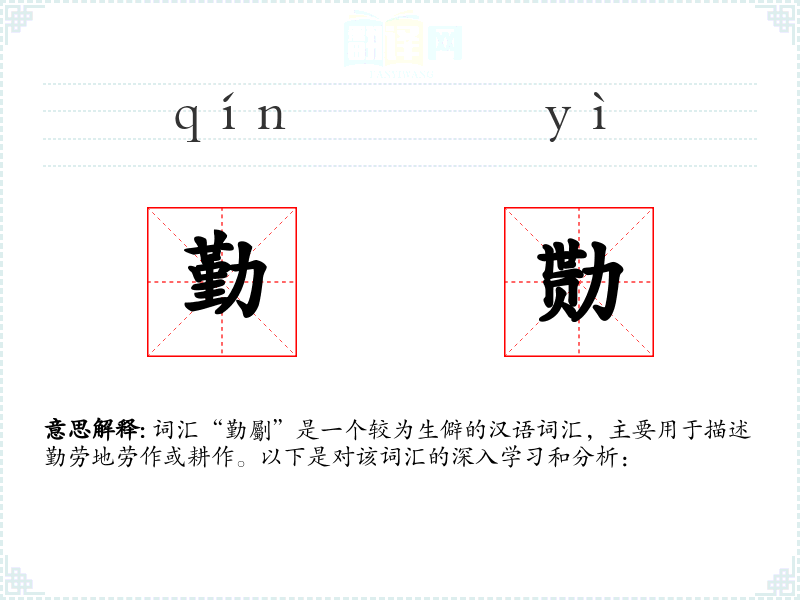 通过以上分析,我们可以更全面地理解“勤劚”这一词汇,并将其应用于不同的语境和创作中。