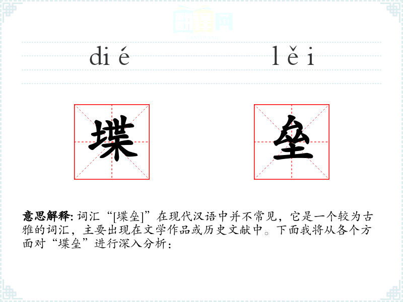 词汇“[堞垒]”在现代汉语中并不常见,它是一个较为古雅的词汇,主要出现在文学作品或历史文献中。下面我将从各个方面对“堞垒”进行深入分析:
