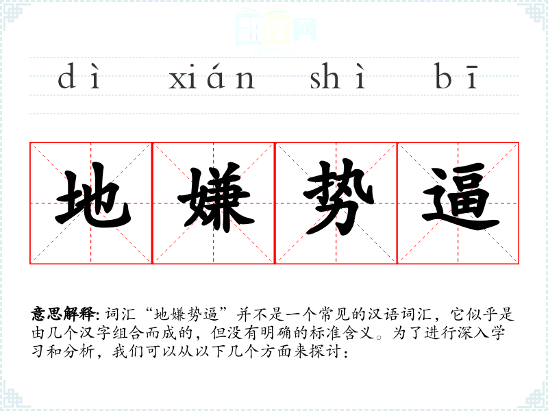 由于“地嫌势逼”不是一个标准词汇,我们无法对其进行深入的分析和理解。在语言学习和表达中,我们应该关注那些有明确含义和广泛应用的标准词汇。