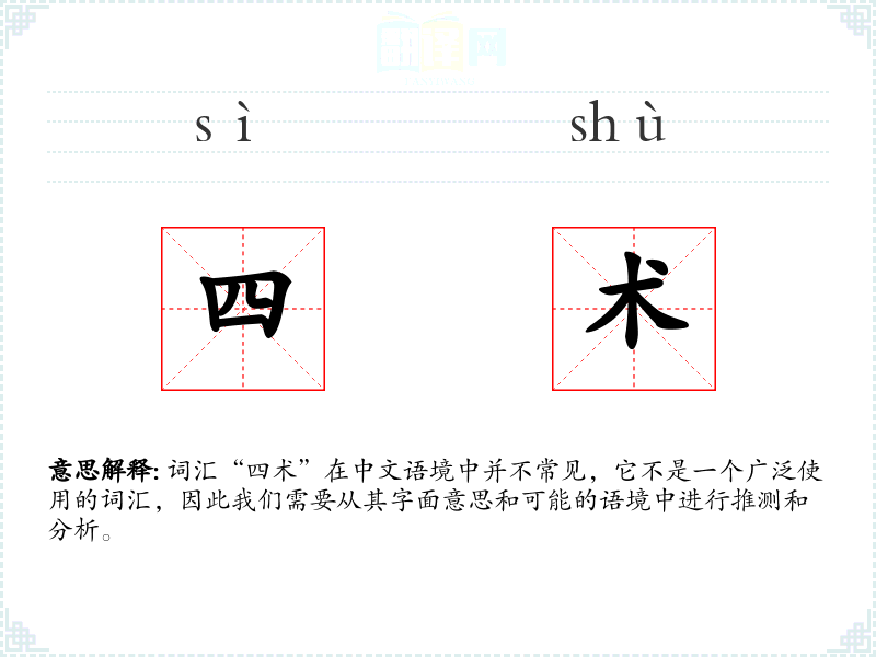词汇“四术”在中文语境中并不常见,它不是一个广泛使用的词汇,因此我们需要从其字面意思和可能的语境中进行推测和分析。