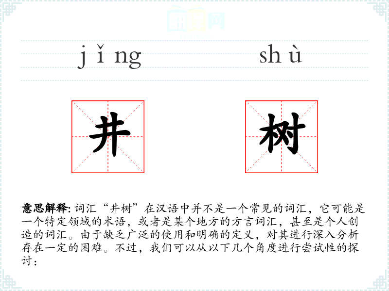 由于“井树”不是一个标准词汇,我们无法探讨其词源和历史演变。
