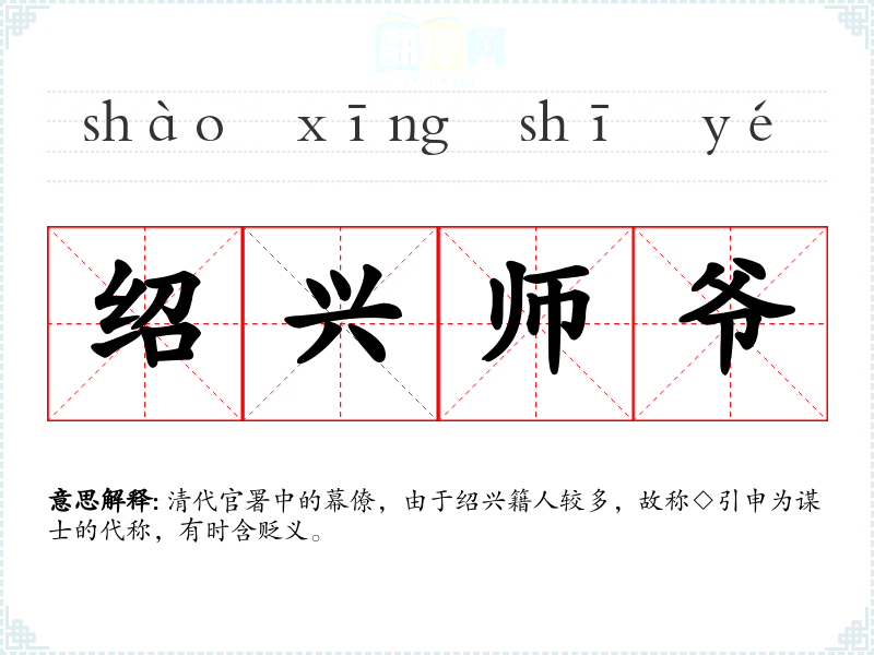 清代官署中的幕僚,由于绍兴籍人较多,故称◇引申为谋士的代称,有时含贬义。
