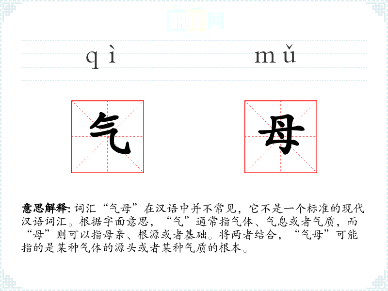 - 反义词:无(由于“气母”不常用,反义词难以确定)