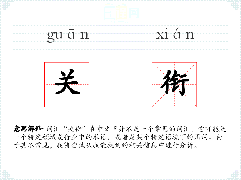 词汇“关衔”在中文里并不是一个常见的词汇,它可能是一个特定领域或行业中的术语,或者是某个特定语境下的用词。由于其不常见,我将尝试从我能找到的相关信息中进行分析。