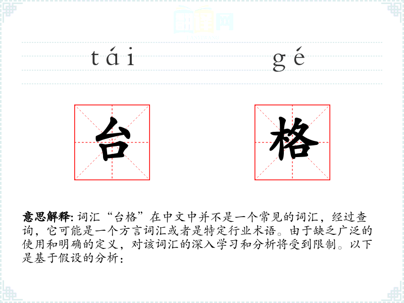 由于“台格”不是一个标准词汇,以上分析基于假设和推测。如果“台格”有特定的定义或使用背景,请提供更多信息以便进行更准确的分析。