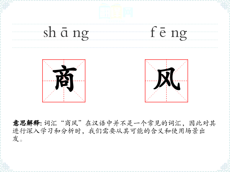 词汇“商风”在汉语中并不是一个常见的词汇,因此对其进行深入学*和分析时,我们需要从其可能的含义和使用场景出发。