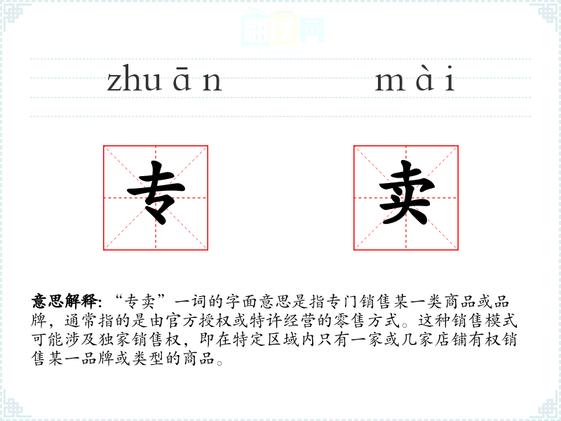 "专卖"的意思解释、专卖是什么意思由翻译网汉语词典查词提供。