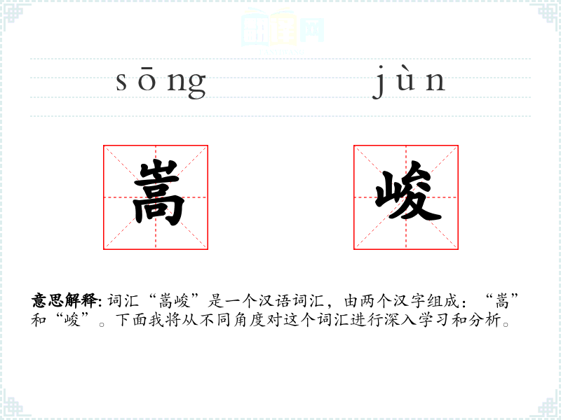 词汇“嵩峻”是一个汉语词汇,由两个汉字组成:“嵩”和“峻”。下面我将从不同角度对这个词汇进行深入学*和分析。