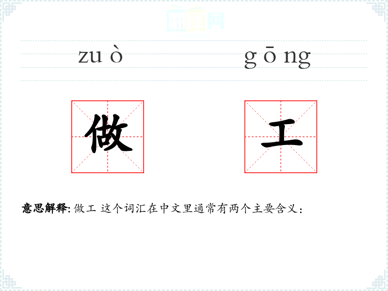 做工 这个词汇在中文里通常有两个主要含义:
