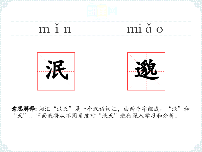词汇“泯灭”是一个汉语词汇,由两个字组成:“泯”和“灭”。下面我将从不同角度对“泯灭”进行深入学*和分析。