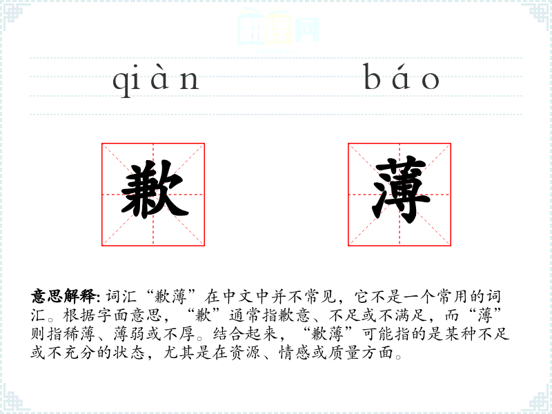 "歉薄"的意思解释、歉薄是什么意思由翻译网汉语词典查词提供。