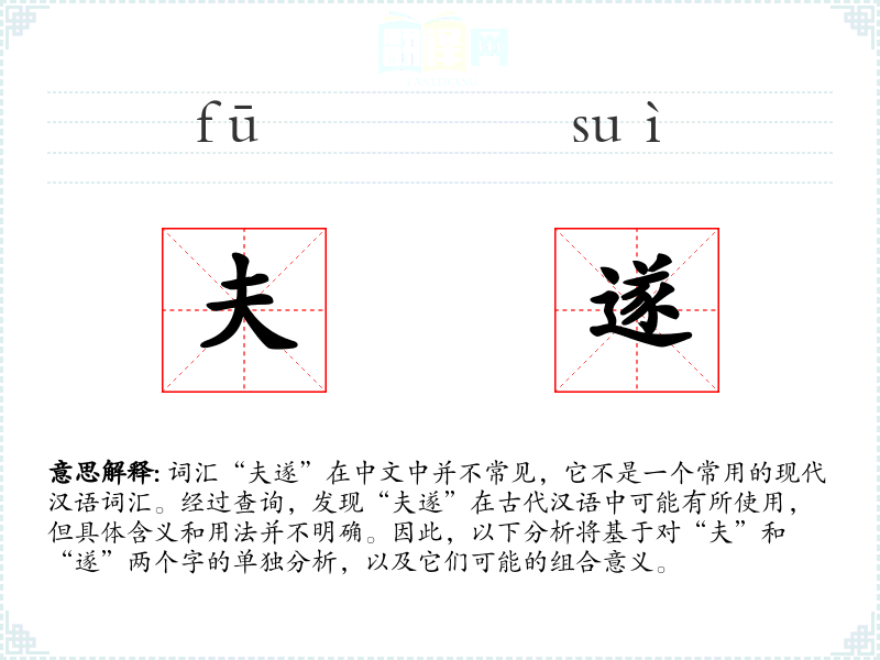 在日常生活中,很少有机会使用或遇到“夫遂”这个词汇。
