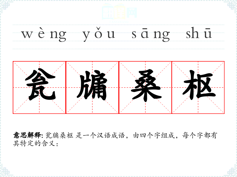 瓮牖桑枢 是一个汉语成语,由四个字组成,每个字都有其特定的含义: