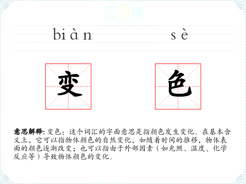 "变色"的意思解释、变色是什么意思由翻译网汉语词典查词提供。