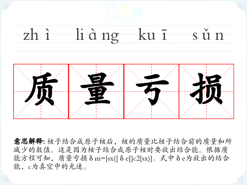 "质量亏损"的意思解释、质量亏损是什么意思由翻译网汉语词典查词提供。