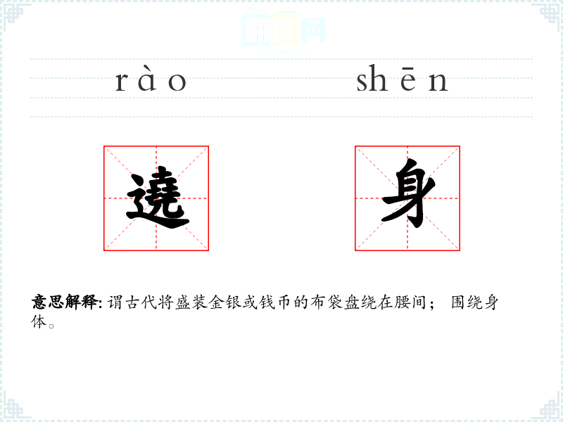 谓古代将盛装金银或钱币的布袋盘绕在腰间; 围绕身体。