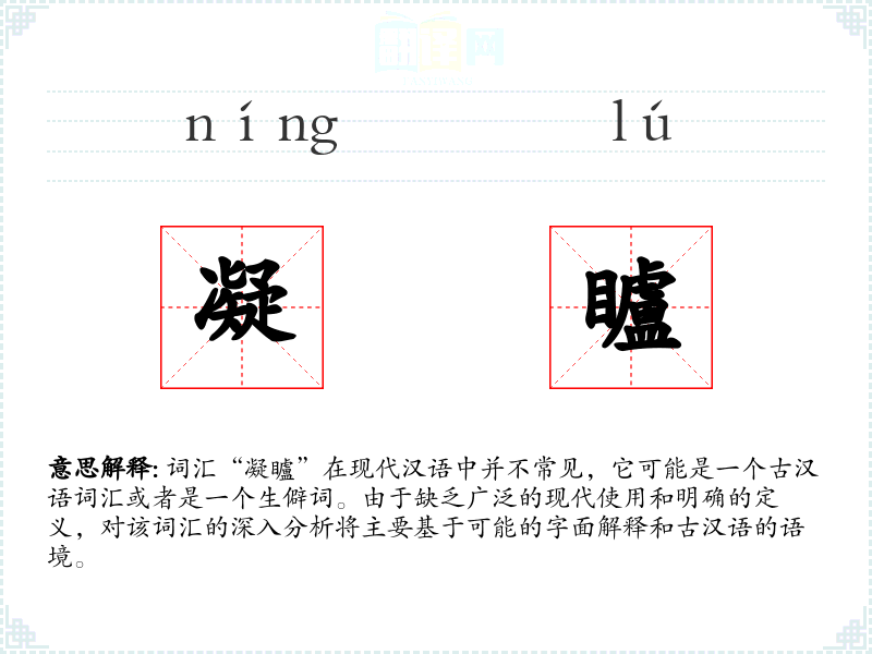 由于“凝矑”是一个生僻词,它在现代文学、口语或专业领域中很少使用。在古文或特定的文学作品中,它可能用来形容人物的专注或深邃的眼神。