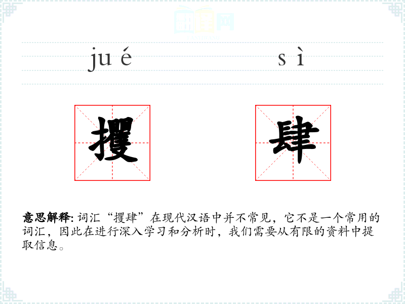 词汇“攫肆”在现代汉语中并不常见,它不是一个常用的词汇,因此在进行深入学习和分析时,我们需要从有限的资料中提取信息。