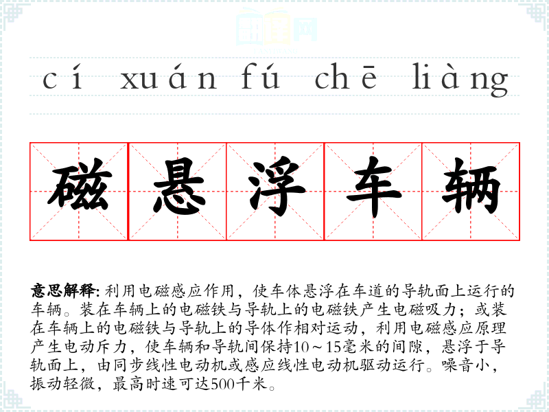 - cí xuán fú chē liàng磁悬浮车辆