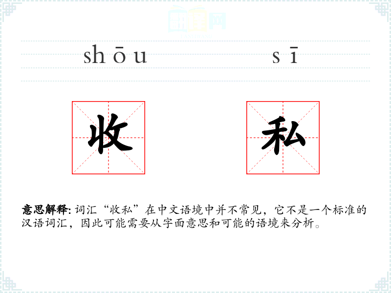 词汇“收私”在中文语境中并不常见,它不是一个标准的汉语词汇,因此可能需要从字面意思和可能的语境来分析。