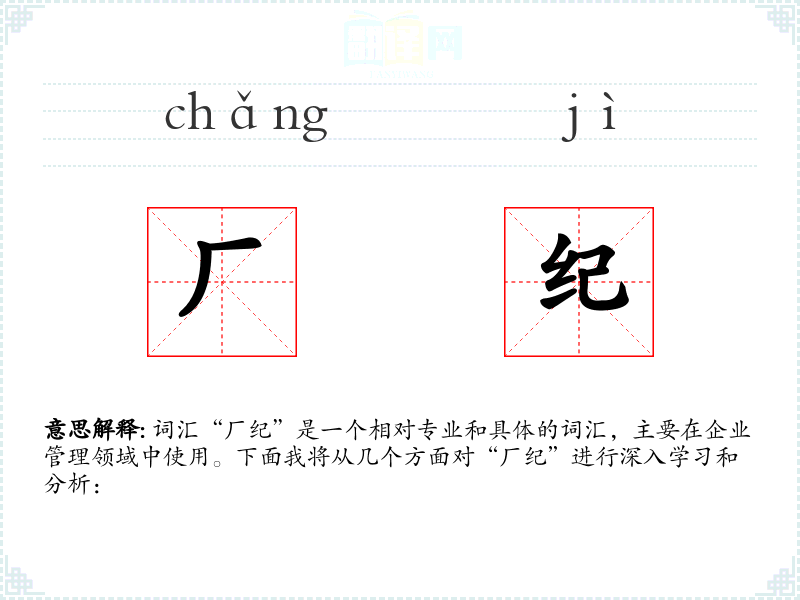 - 专业领域:在企业管理、工业工程等专业领域,“厂纪”是一个常用词汇,用于讨论和制定工厂的规章制度。