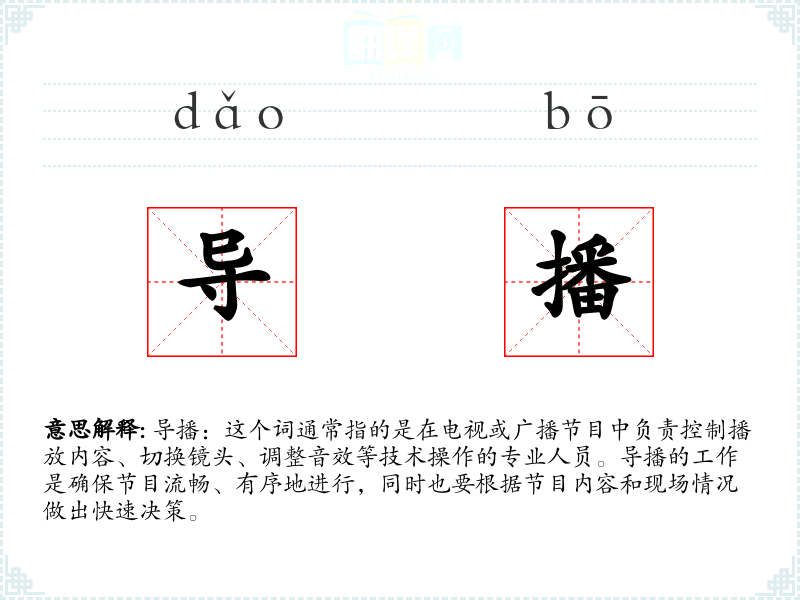 - 同义词:导演、控制员、调度员。这些词汇在某些情境下可以与导播互换使用,但每个词都有其特定的侧重点。