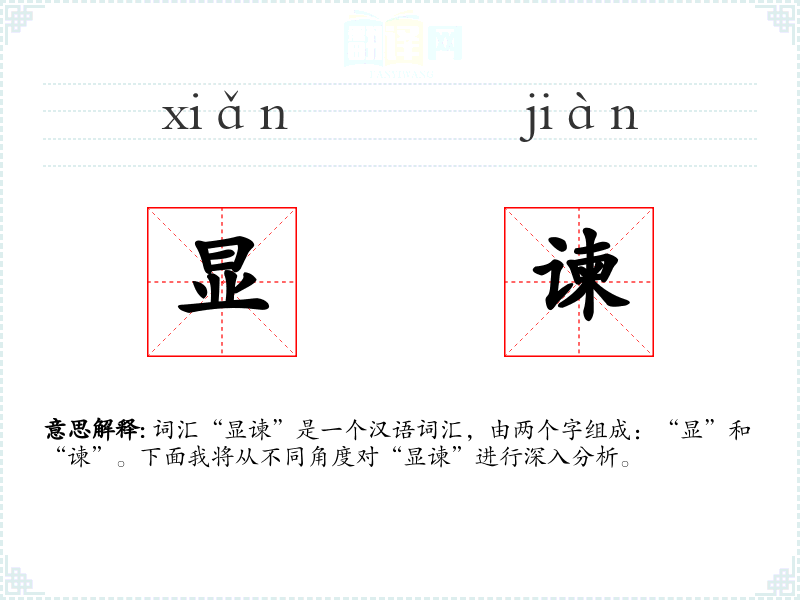 - 词源:“显”和“谏”都是古代汉语词汇,源自古代的礼仪和政治文化。