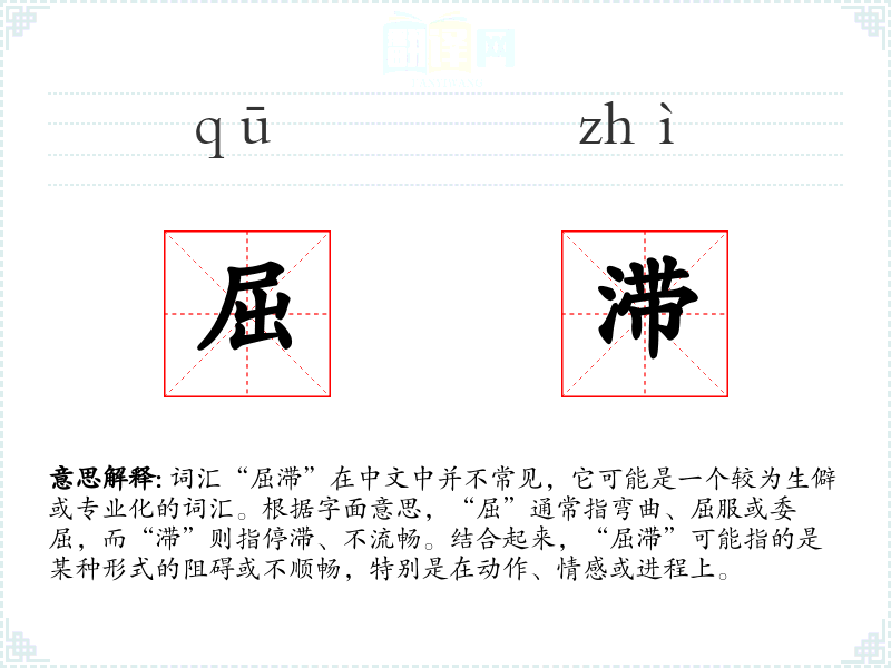 - 文学:在文学作品中,“屈滞”可能用来形容人物的内心世界或外在行为的不顺畅。