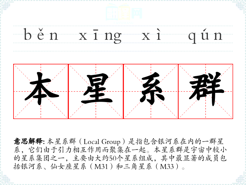 "本星系群"的意思解释、本星系群是什么意思由翻译网汉语词典查词提供。