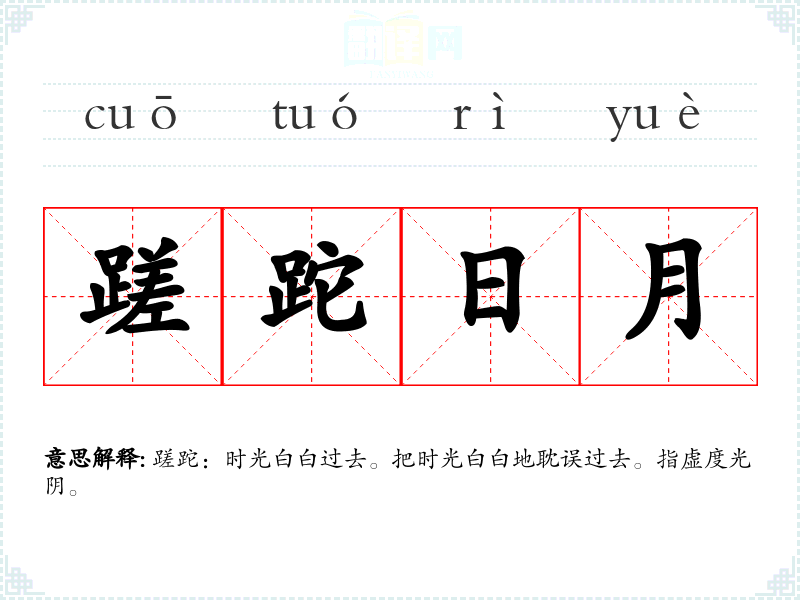 蹉跎:时光白白过去。把时光白白地耽误过去。指
