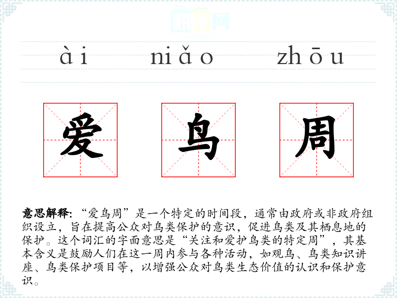 "爱鸟周"的意思解释、爱鸟周是什么意思由翻译网汉语词典查词提供。