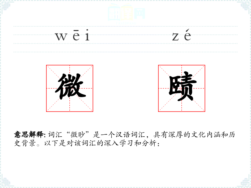 词汇“微眇”是一个汉语词汇,具有深厚的文化内涵和历史背景。以下是对该词汇的深入学*和分析: