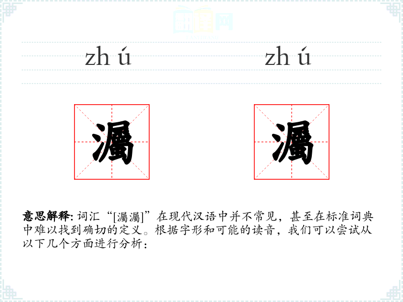 词汇“[灟灟]”在现代汉语中并不常见,甚至在标准词典中难以找到确切的定义。根据字形和可能的读音,我们可以尝试从以下几个方面进行分析: