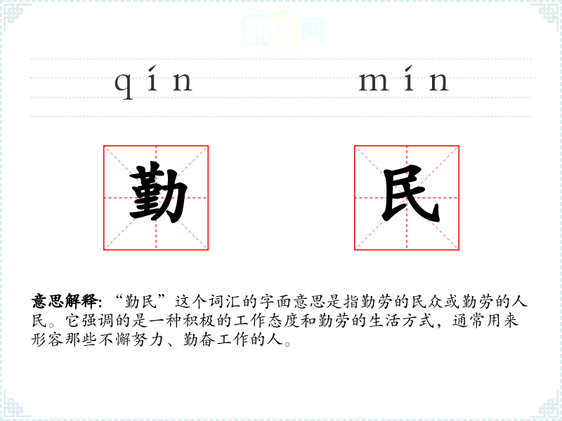 “勤民”这个词汇的字面意思是指勤劳的民众或勤劳的人民。它强调的是一种积极的工作态度和勤劳的生活方式,通常用来形容那些不懈努力、勤奋工作的人。