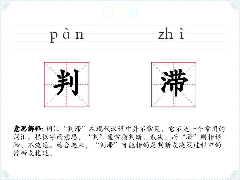 - 词源:“判”和“滞”都是古代汉语词汇,组合起来形成一个新的概念。