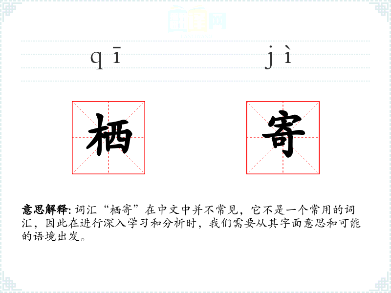 词汇“栖寄”在中文中并不常见,它不是一个常用的词汇,因此在进行深入学习和分析时,我们需要从其字面意思和可能的语境出发。