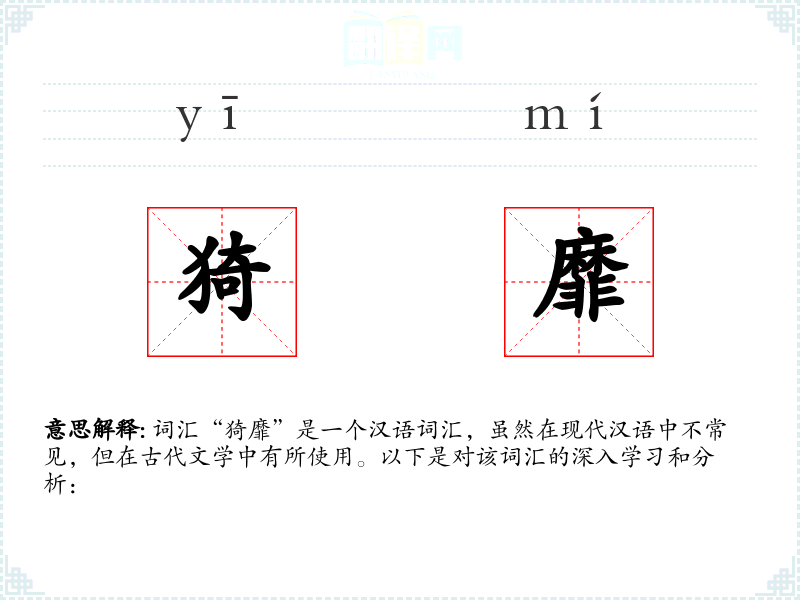 词汇“猗靡”是一个汉语词汇,虽然在现代汉语中不常见,但在古代文学中有所使用。以下是对该词汇的深入学*和分析:
