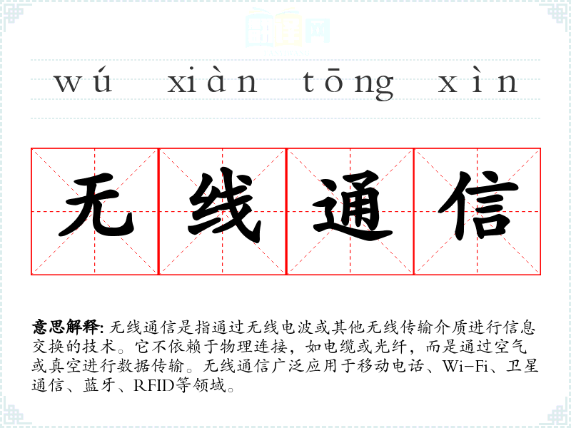 "无线通信"的意思解释、无线通信是什么意思由翻译网汉语词典查词提供。