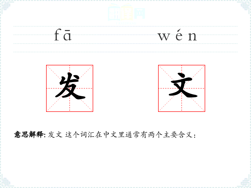 "发文"的意思解释、发文是什么意思由翻译网汉语词典查词提供。