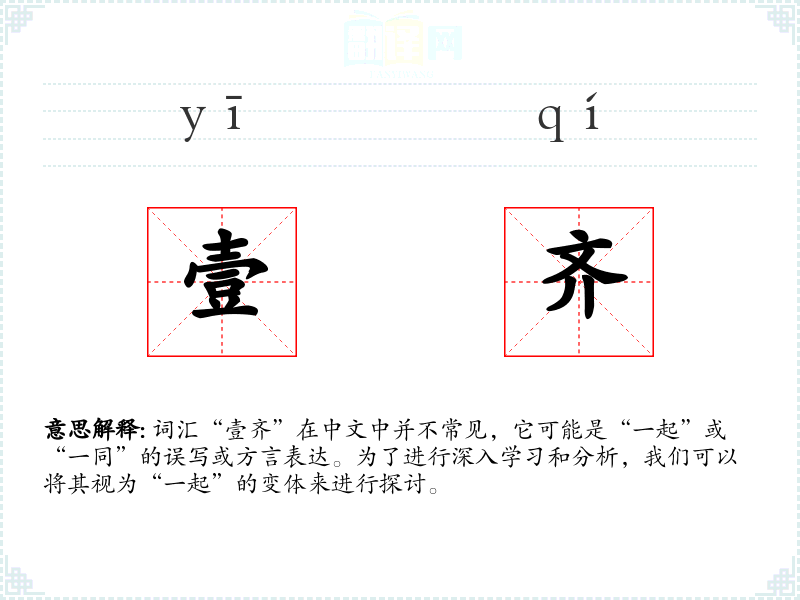 词汇“壹齐”在中文中并不常见,它可能是“一起”或“一同”的误写或方言表达。为了进行深入学习和分析,我们可以将其视为“一起”的变体来进行探讨。