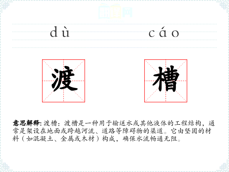 - 反义词:无(渡槽是一个特定的工程术语,没有直接的反义词)