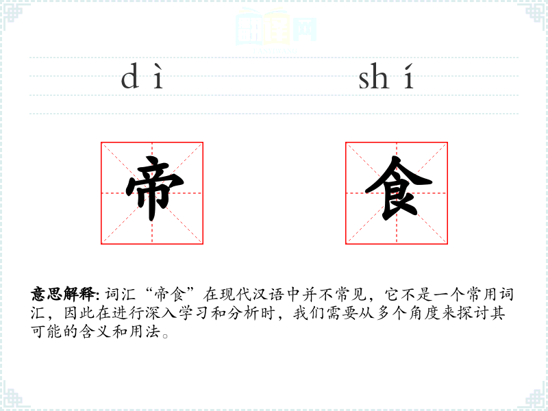 词汇“帝食”在现代汉语中并不常见,它不是一个常用词汇,因此在进行深入学*和分析时,我们需要从多个角度来探讨其可能的含义和用法。