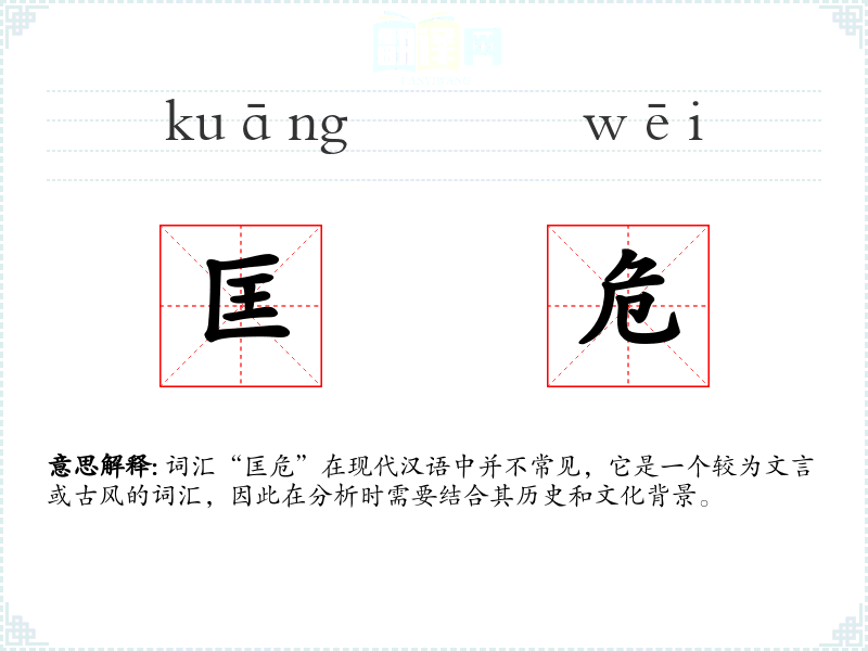 词汇“匡危”在现代汉语中并不常见,它是一个较为文言或古风的词汇,因此在分析时需要结合其历史和文化背景。