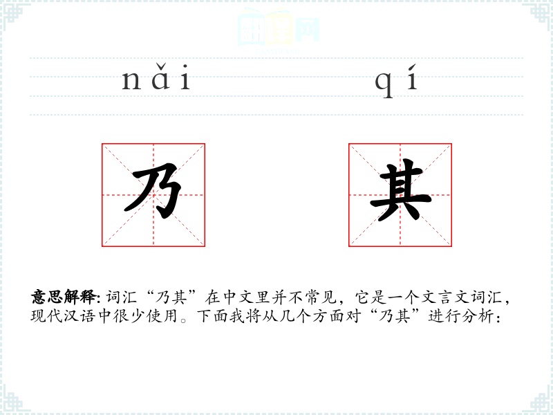 词汇“乃其”在中文里并不常见,它是一个文言文词汇,现代汉语中很少使用。下面我将从几个方面对“乃其”进行分析: