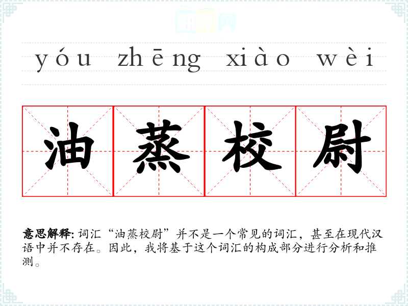词汇“油蒸校尉”并不是一个常见的词汇,甚至在现代汉语中并不存在。因此,我将基于这个词汇的构成部分进行分析和推测。